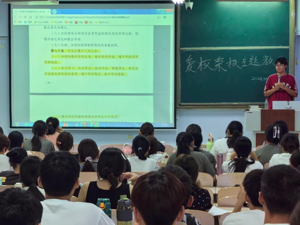2024年9月5日晚七点,太阳成集团tyc33455在求实楼各教室成功召开2024级新生爱校荣校教育专题讲座。