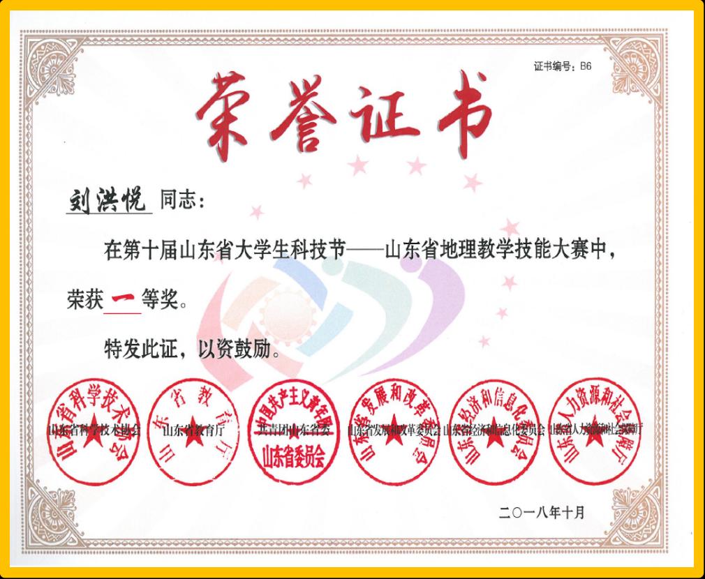 近五年,近五年来,在山东省师范类高校学生从业技能大赛中获二等奖2项、三等奖8项、钢笔字技能考核B级3项,在山东省大学生地理教学技能大赛中获特等奖2项、一等奖2项、二等奖8项、三等奖6项。“田家炳杯”全国师范院校师范生教学技能竞赛三等奖2项。多名实习生被授予“优秀实习支教生”“优秀支教大学生”“优秀支教教师”“优秀实习生”等荣誉称号。