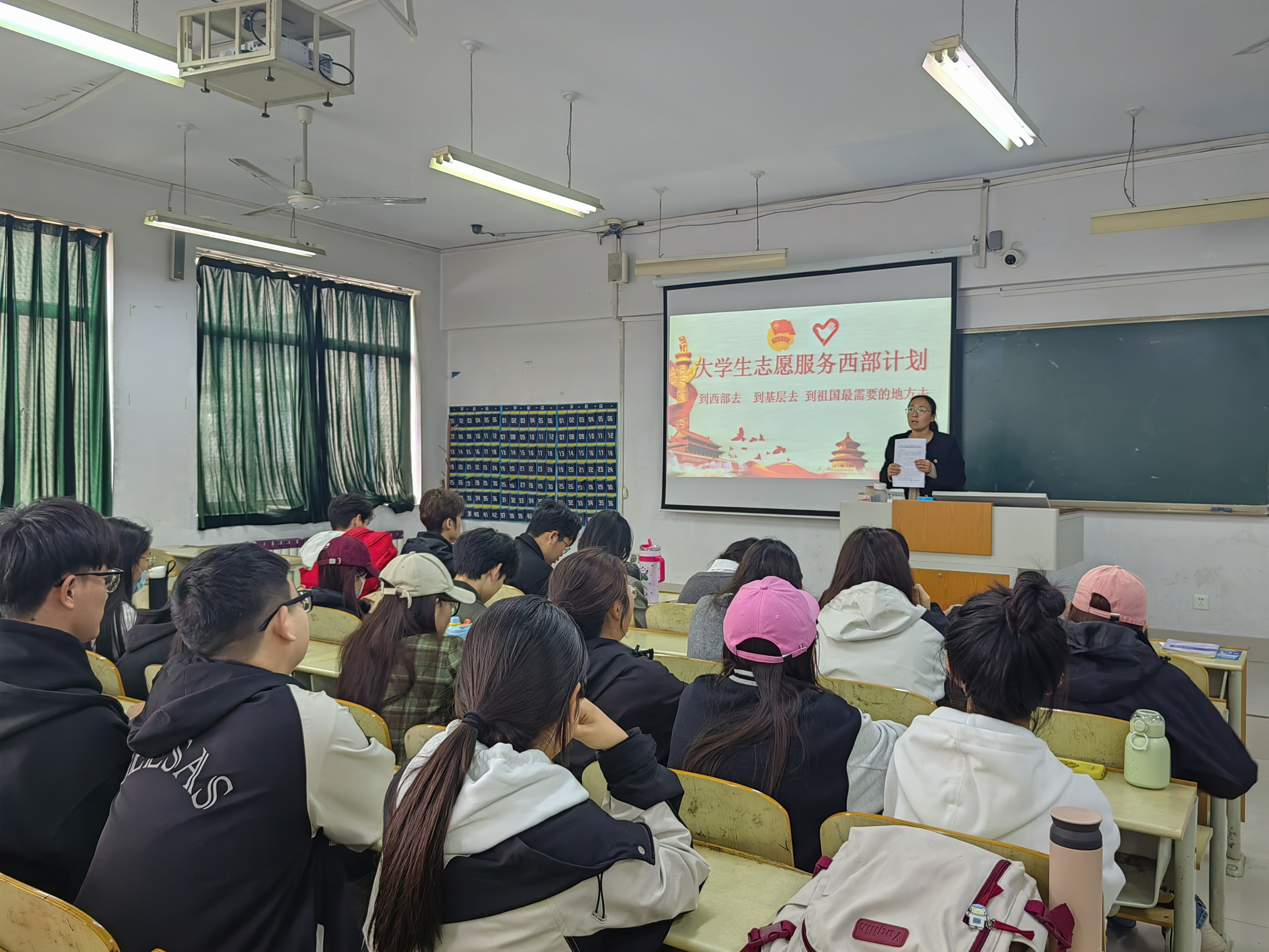 会上,学院团委书记详细介绍了近几年来有关西部计划的政策方针,对西部计划中的热点问题进行了积极解答,加深了同学们对西部计划的认识。进而,就大学生志愿者西部计划政策、网上报名流程、志愿者选拔标准等宣传和要点进行解读,并介绍了相关政策的支持和利益保障,让同学们对于西部计划有了更明确的认识。