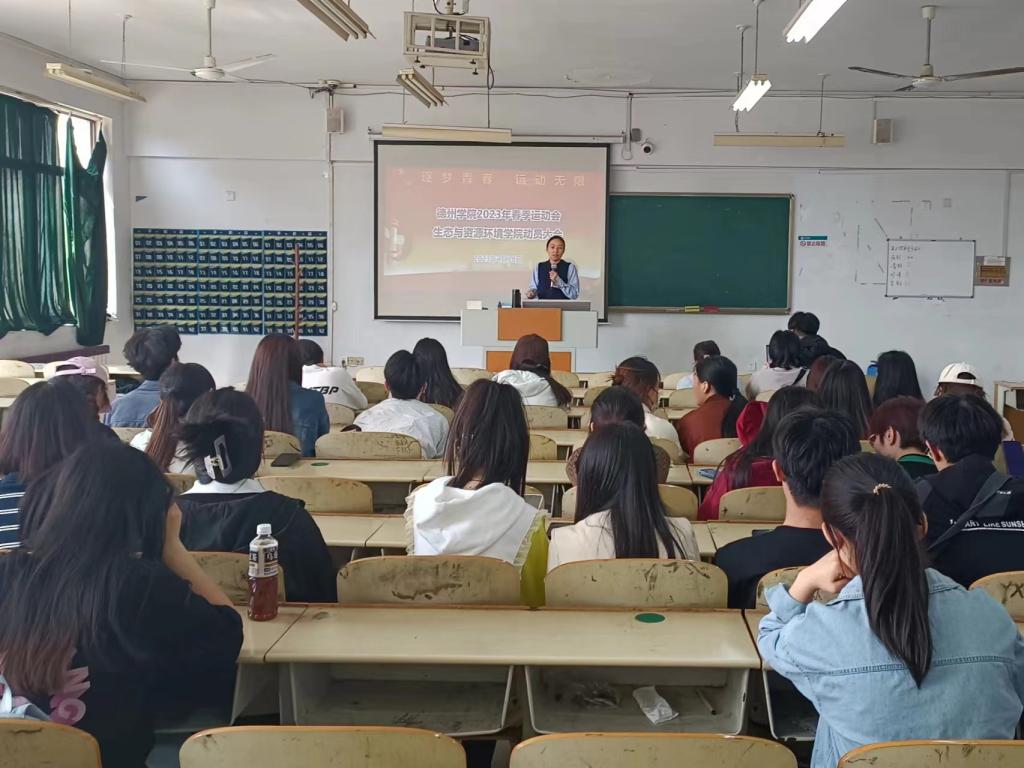 在春季运动会将到来之际,为充分调动运动员的积极性,同时保障训练期间各项服务工作有序进行。2023年4月18日上午,太阳成集团tyc33455在求实楼401教室开展了春季运动会动员大会。