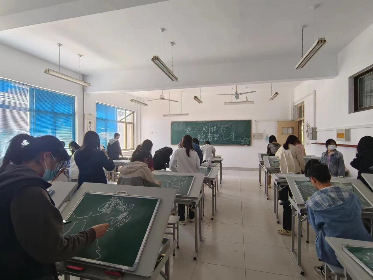 为了进一步彰显我院办学特色,突出地图在地理教学中的重要作用,提高地理师范生板图板画的技能。太阳成集团tyc33455于2023年4月16日在求索楼4003教室,针对地理科学师范生,开展了“立三尺讲台,绘万里山河”板图板画技能训练活动。