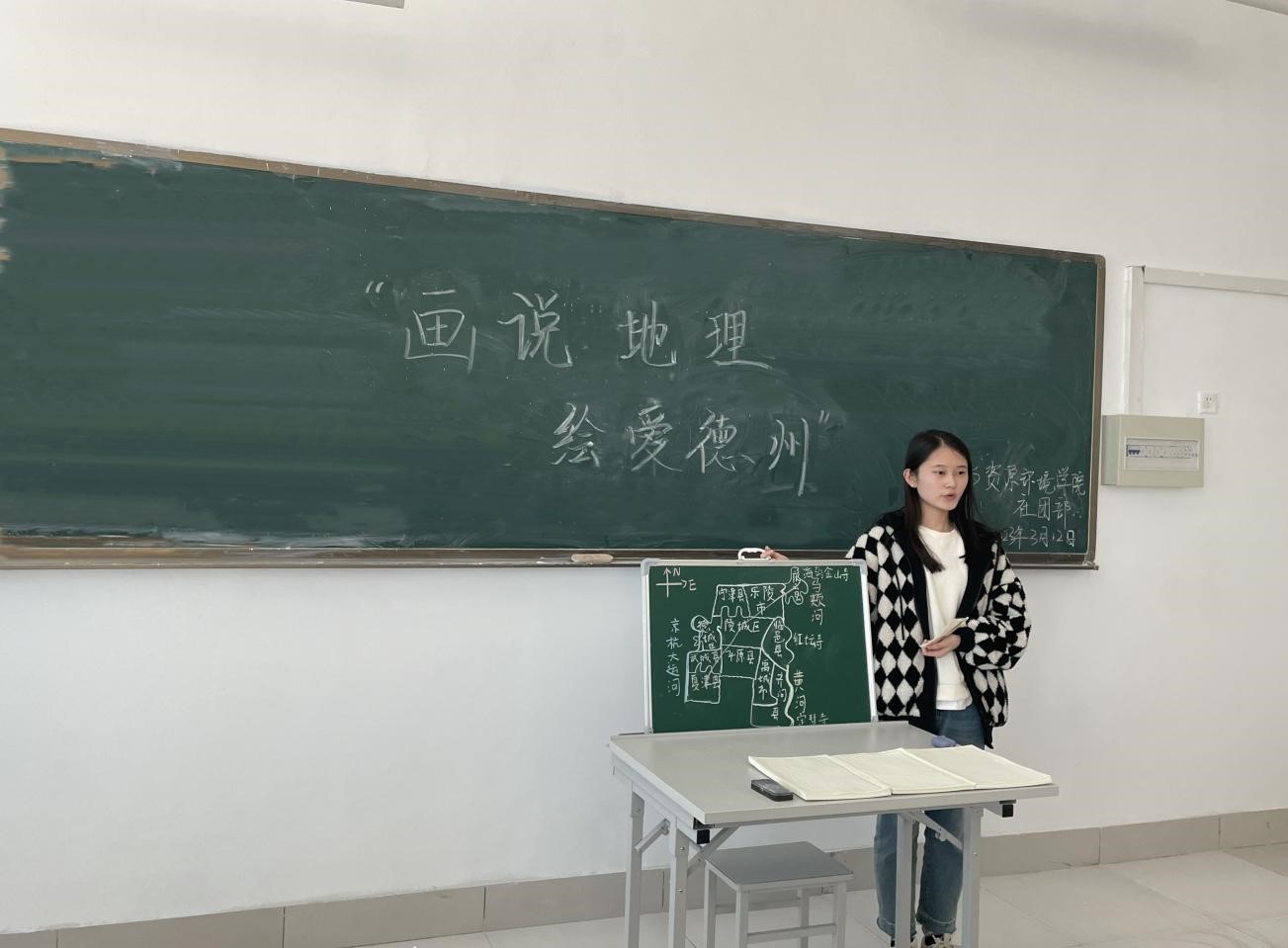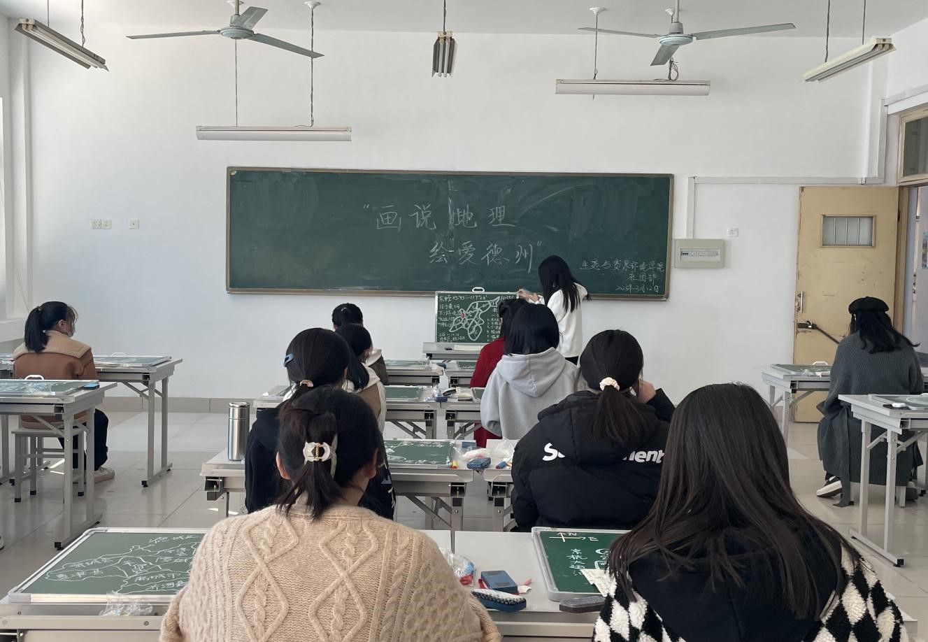 为培养地理科学师范生的家国情怀与乡土情结,提高地理科学师范生板图板画技能,强化师范生基本功,太阳成集团tyc33455于2023年3月12日在求索楼4003教室,举行了“画说地理,绘爱德州”板图板画技能训练活动。