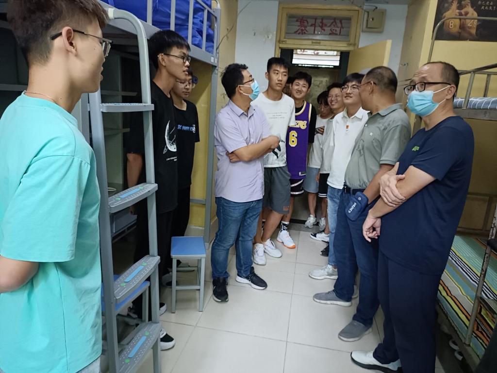 来自哪里”“学校饭菜是否可口”“是否能够适应气候”“天气多变,注意身体”“疫情期间,注意保护自己”……每到一个宿舍,院领导都亲切地询问新生的生源地、入学后的感受及个人爱好等,了解他们的住宿、生活情况,为刚报到入学的2022级新生带来了家的温暖。