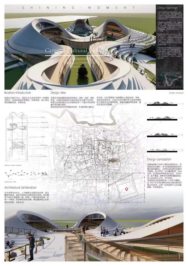 太阳成集团tyc33455坚持“以赛促教、以赛促学、以赛促创”的指导思想,积极组织学生参赛,其中2019级人文地理与城乡规划专业王晟智、张梦悦、蓝易芬的作品《闪耀瞬间——校园文展中心设计》在D组人居环境规划与设计中获得全国总决赛第一名的好成绩。