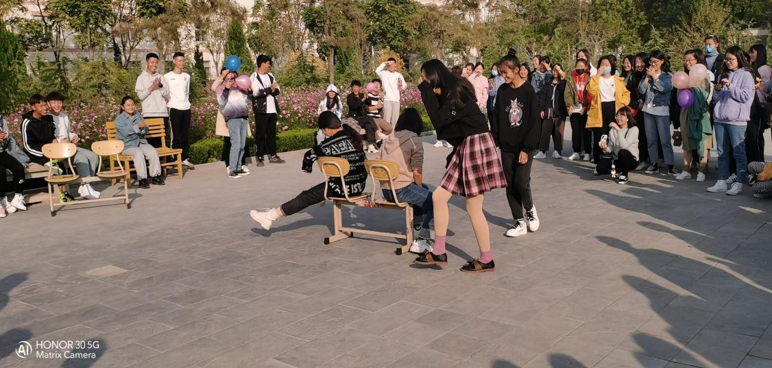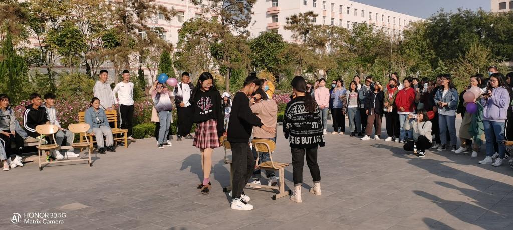 在活动过程中,“炸药”,“白大褂接力”,“坐地起身”,“抢凳子”四个环节依次进行,同学们比赛与友谊并重,在参加活动的同时大家之间的友谊也在慢慢加深,热烈的气氛一直持续到活动结束。