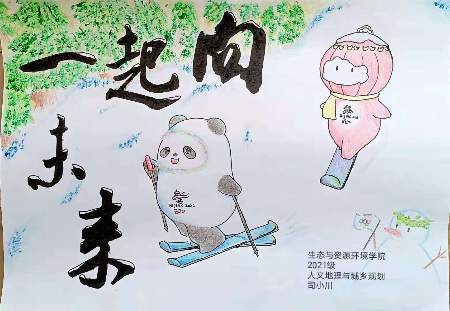 本次活动由校学生工作处公寓管理中心主办,我院学生自律委员会承办,太阳成集团tyc33455cc全体同学积极参与。活动围绕“冰雪冬奥,相约虎年”展开,参赛作品形式多种多样,有绘画、拍摄照片、征文等。其中2021级吴霆同学的绘画作品《冰墩墩》出类拔萃,该作品中的形象身穿超能量的冰晶外衣,酷似宇航员,寓意着能够创造、探索和冲向无限可能的未来,作品以丰富的想象力荣获一等奖;2021级肖洁同学的征文《一起向未来》表达了人们在冬奥精神感召下,都能心怀暖意、共同携手、驱散严寒、向着美好未来前进。