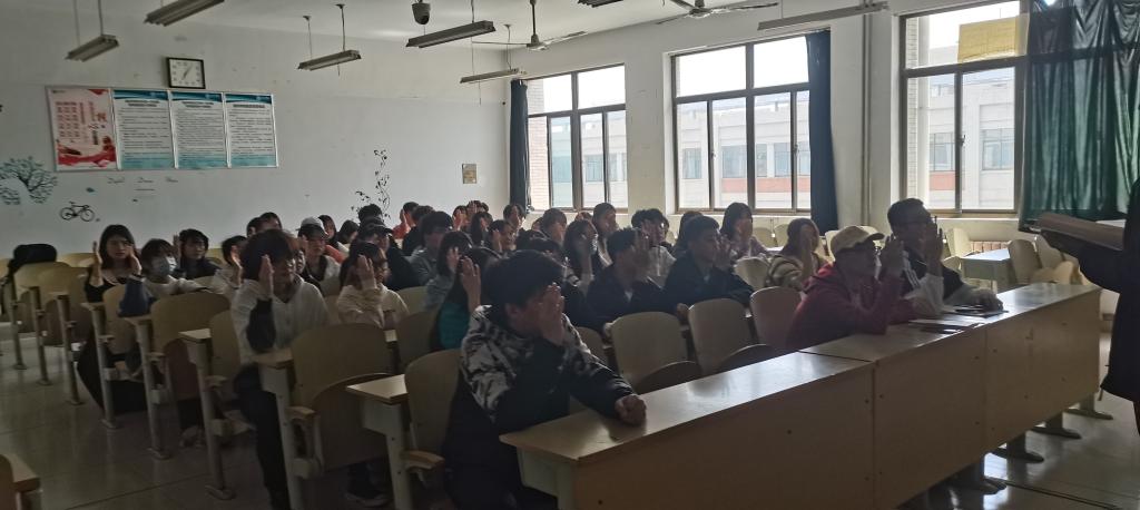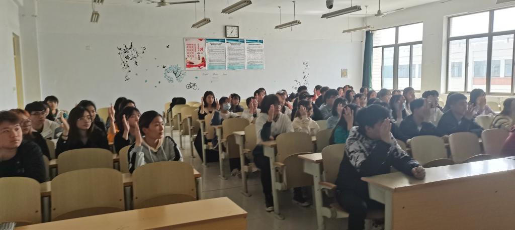 本次会议由学生会主席张坤主持,学生会中的全体团员共同参与。大会在神圣而庄严的中华人民共和国国歌中拉开序幕。首先由主持人带领团员重温入团誓词,并由主持人宣读有关团支部的选举方法及相关事宜。紧接着,在工作人员的指导和协助下,各团支部团干候选人以演讲的方式进行团干选举,按照选举方法公平、公正、公开地进行选举投票。投票结束后,在计票员与监票员进行统计票数工作的同时,主持人对团学活动进行了介绍并且组织观看了团学活动的相关视频。接下来,主持人宣布票数结果,设立团支部书记为李坤亮,宣传委员为王力志,组织委员为邵莹,各团支部所有团员用掌声见证并肯定了这次选举的结果。最后大会在欢快而庄严的中国共产主义青年团团歌一—《光荣啊!中国共青团》中拉下帷幕。张坤主席提出,在今后的学习与工作中,要以一个共青团干部的标准来严格要求自己,在学习中进步,在实践中成长。