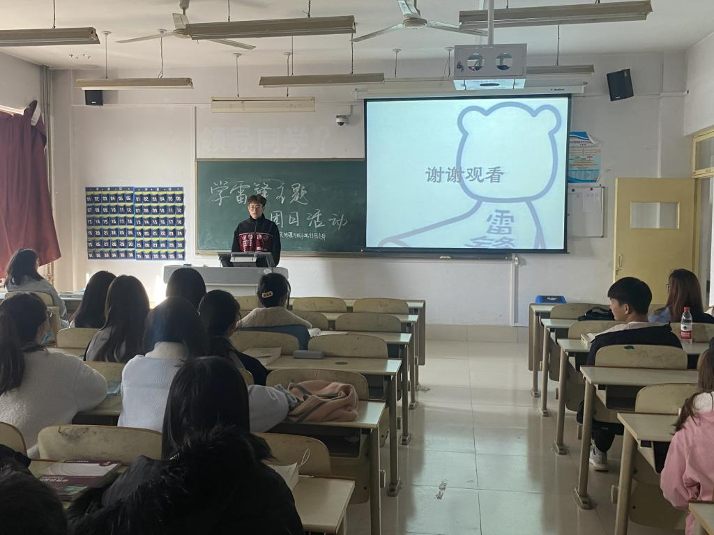 本次活动分为三部分,第一部分是由团支书介绍了雷锋的生平和雷锋精神的含义,雷锋于1960年参加人民解放军,并于1962年因公殉职,享年22岁。雷锋精神则是以雷锋的精神为基本内涵,在实践中不断丰富和发展着的革命精神。雷锋精神内涵主要由“上”和“善”两部分组成,“上”是指在工作,学习,生活三方面分别“向上”,“善”则是指在理想信念,价值取向和人际关系三方面分别“向善”。在生活中形成勤俭节约和吃苦耐劳的作风,发扬雷锋的奉献精神、爱国精神和合作精神。第二部分是全体团员共同观看雷锋纪录片《雷锋的微笑》,视频里概括了雷锋生平中的几个重要事件,视频中雷锋乐于助人,爱国爱党,无私奉献的精神感动了许多同学。这个纪录片有助于同学们进一步了解雷锋以及雷锋精神。第三部分是由同学们讲述身边的“雷锋”故事,和自己对雷锋精神的理解,从身边的小事更加深刻的理解雷锋精神的内涵。