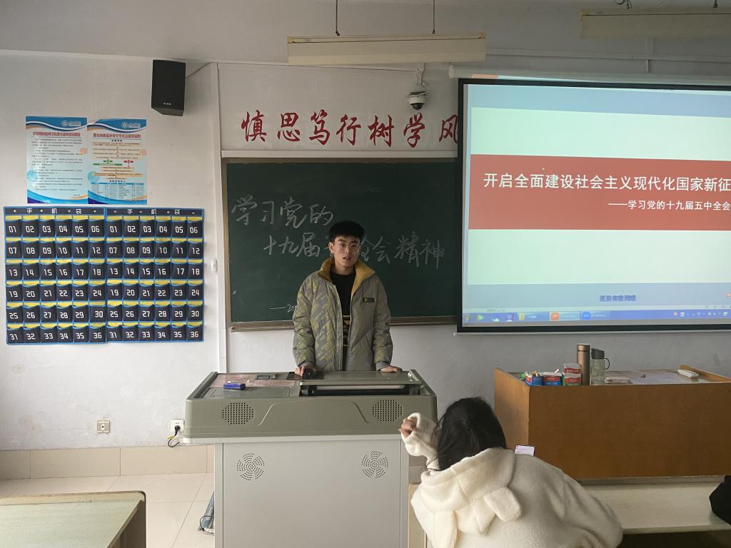 本次活动主题为“学习第十九届五中全会会议精神”。活动分为两部分,第一部分由团支书靳文林同学,组织观看关于“第党的十九届五中全会精神”的微团课视频和PPT,传达会议精神。第二部分由团员代表曲信安同学交谈自己的学习体会与心得,发表自己对学习十九届五中全会精神的看法与见解。在主题团日活动中,同学们学习了党的十九届五中全会精神。各位团员积极发表自己的感悟和想法,并表示一定会继续学习党的十九届五中全会精神,提高自己的思想觉悟。