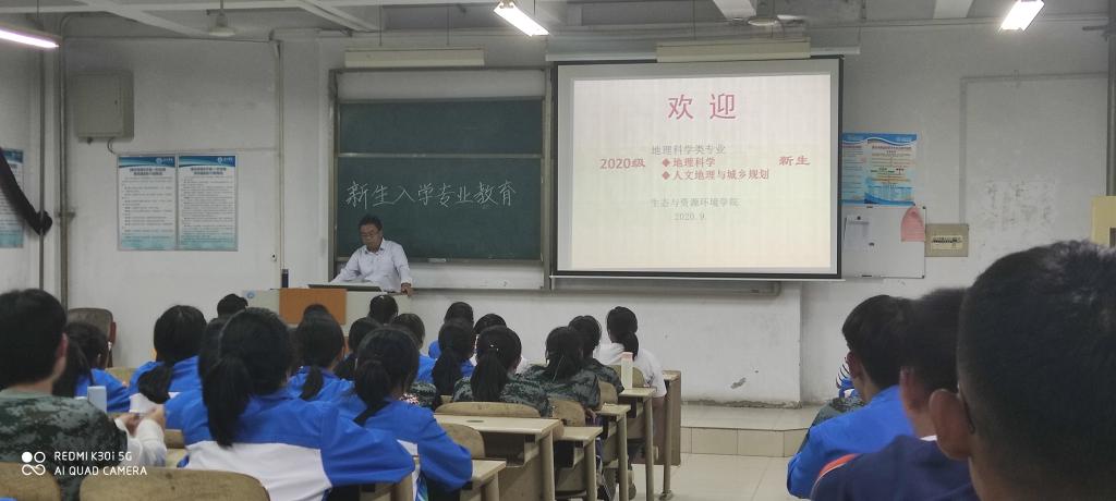 地理科学类专业主讲刘富刚教授,先是跟新生谈论了何为大学,让同学们思考了对大学的认识,从学习、修身以及空间行为三个方面为同学们树立目标。其次为同学们介绍了院情,并深度剖析何为地理、何为地理科学,即本专业大学四年学什么,本专业的学习方法,教学管理的目标、如何学习以及四年规划等。随后老师寄语“经纬天地、天道酬勤,一分耕耘孕育一分收获,一分汗水浇灌一分成功。让我们共同播撒希望的种子,辛勤耕耘,翘首以待下一个丰收的秋天!”
