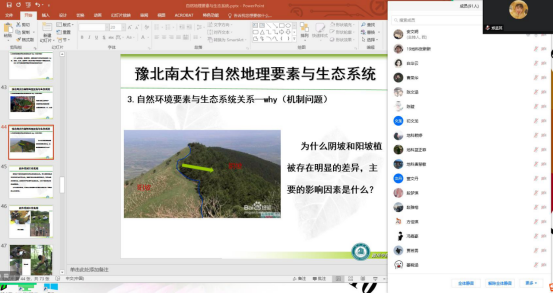 授课期间,唐艳老师进行了实习动员并讲解自然地理学综合实习基本概要和方法;刘芬老师、祁兴芬老师和安文明老师分别从宇宙与自然地理环境、地质地貌与自然地理环境、自然地理要素与生态系统等方面展开教学工作。