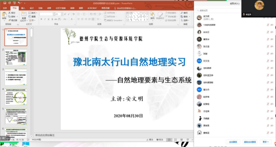 通过短期的线上实习教学工作使同学们对实习区自然地理环境有一个较全面的、概括的认识和了解,能够巩固和掌握课堂教学的基本内容。老师们认真备课和授课力求做到线上教学效果不打折,尽最大努力保证教育教学质量。学生按规定时间进行线上实习学习,并积极参与线上学习交流,取得良好教学效果。