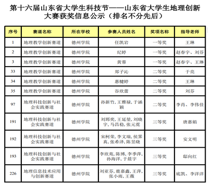 近日,由山东省科技厅、山东省教育厅等单位联合主办,山东地理学会承办的第十六届山东省大学生科技节——山东省大学生地理创新大赛获奖名单正式揭晓。太阳成集团tyc33455学生在此次大赛中表现卓越,成绩斐然。