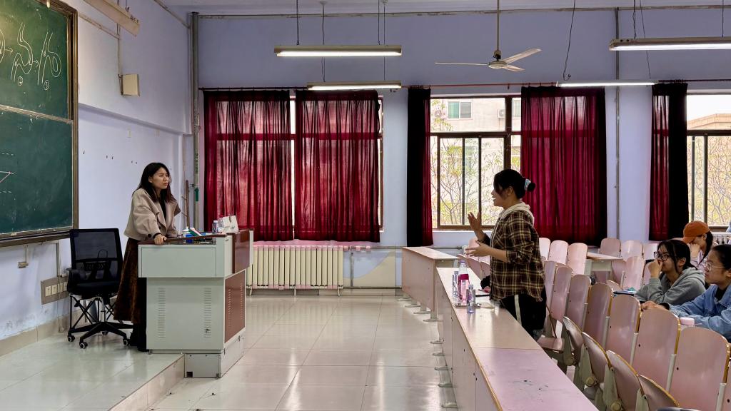 作为德州市第九中学地理教学一线的优秀教师,两位老师结合自身多年教学经验,围绕初中地理教学核心要点,为师范生们带来了兼具理论性与实操性的精彩分享。讲座伊始,杨辉老师以“板图板画在初中地理教学中的应用”为主题,从设计依据与原则、教学作用分析、设计方法分类、初中地理适用范围及应用注意事项四大维度展开详细讲解。讲解过程中,杨老师结合初中地理教学实际,现场进行板图示范,从区域地理轮廓勾勒到地理要素标注,动作娴熟、条理清晰,直观展示了板图板画的设计技巧与应用方法,让在场师范生对板图板画的教学价值有了更深刻的认知。