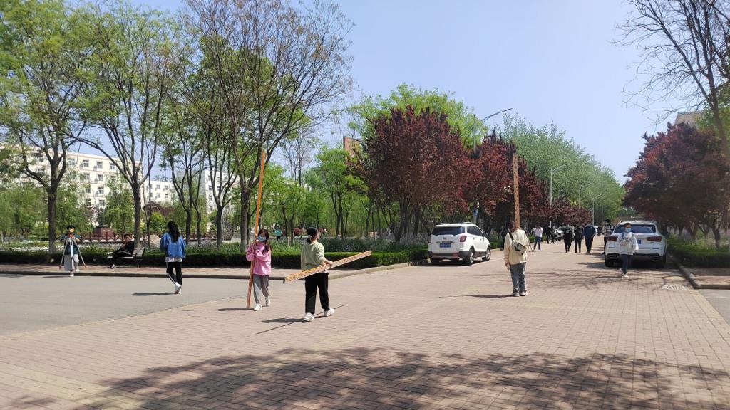 实习期间,在我院贾海慧老师、王磊老师的指导带领下,同学们分组在校园内进行测量学实习。通过老师的理论知识讲解,同学们对相关仪器操作有了初步了解,学习了基本测量步骤,各小组独立自主完成实习内容。同学们使用全站仪、经纬仪等仪器,完成了距离、角度、高程测量任务,并记录测量数据,绘制测量图纸。在23日、24日,同学们一起验算测量数据,整理实习报告。