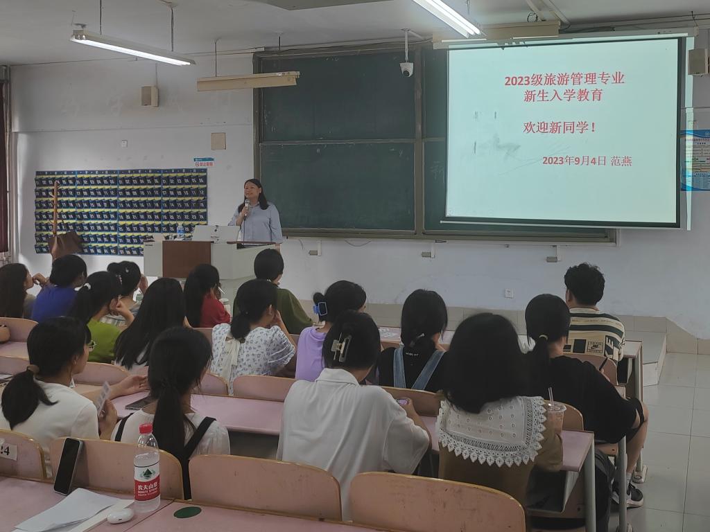 为推动立德树人根本任务走深走实,进一步落实新生入学教育工作,更好地帮助新生树立良好的专业思想、专业意识和专业精神,提升专业认同感,明确专业内涵及目标,进而激发其学习的积极性和主动性,同时也为学生合理设计大学期间学习规划奠定基础,太阳成集团tyc33455于9月4日在求实楼分专业举行新生入学教育暨专业认知教育活动。地理科学系主任邸向红、人文地理与城乡规划专业系主任张东旭、风景园林专业系主任高方胜、环境生态工程专业系主任宋宁宁、旅游管理专业负责人范燕五位老师及2023级全体新生参加。