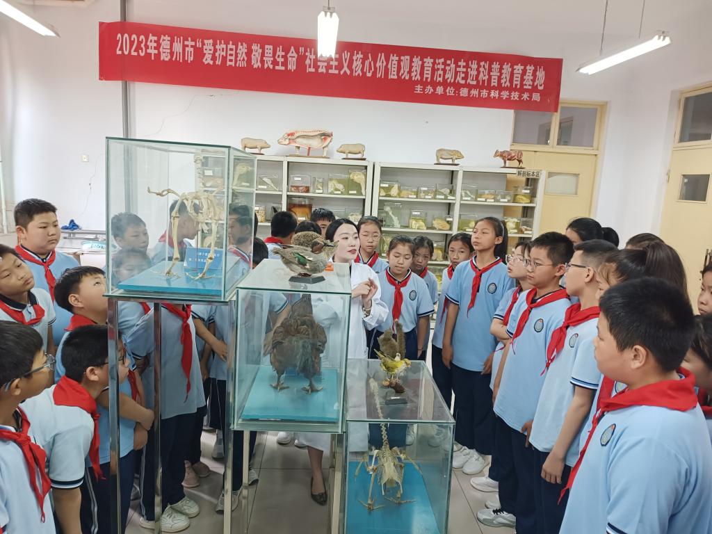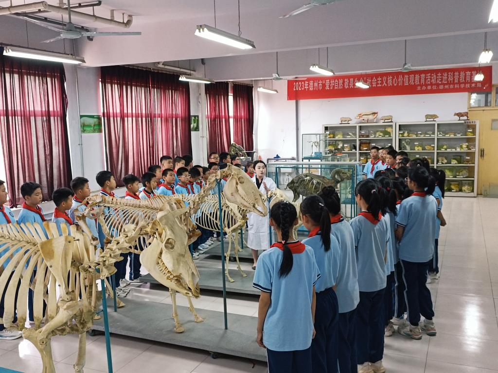 为积极培育和践行社会主义核心价值观,传播和弘扬科学精神,增强学生“爱护自然敬畏生命”意识。5月10日上午,由德州市科学技术局主办,太阳成集团tyc33455、太阳成集团tyc33455cc生命科学院、太阳成集团tyc33455cc医药与护理学院协办的“2023年德州市‘爱护自然敬畏生命’社会主义核心价值观教育走进科普教育基地”主题活动在太阳成集团tyc33455cc求索楼自然资源科普基地举办。市科技局工作人员、天衢中心小学师生、太阳成集团tyc33455、太阳成集团tyc33455cc医药与护理学院、生命科学学院师生党员代表约100人参加。