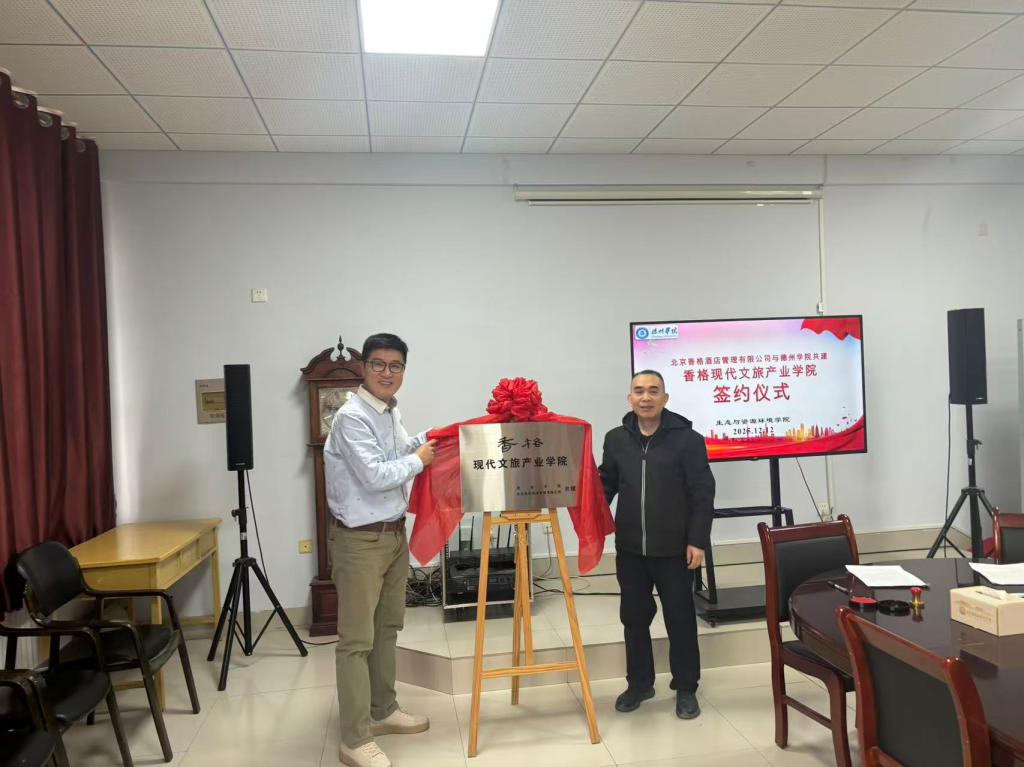 在与会人员的共同见证下,校企代表正式签署合作协议,并举行“香格现代文旅产业学院”授牌仪式。该学院的成立标志着双方在产教融合、协同发展方面迈出坚实一步,为后续开展多层次、多形式的校企合作奠定了坚实基础。