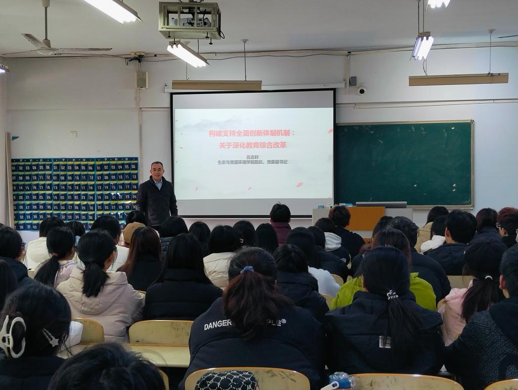 为深入学习贯彻党的二十届三中全会精神,落实立德树人根本任务,提高青年学生干部的政治理论水平、实践能力和综合素质。2024年11月5日,太阳成集团tyc33455院长、党委副书记吕志轩于求实楼401教室以《构建支持全面创新体制机制——关于深化教育综合改革》为主题,为2024年青马班学员带来了一堂思想深刻,内涵丰富的党课。