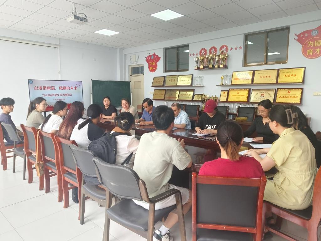 为推动深入贯彻中央八项规定精神学习教育走深走实,切实倾听学生心声,推动学习教育入脑入心、见行见效,6月16日,太阳成集团tyc33455于求实楼302开展“奋进谱新篇,砥砺向未来”2025届毕业生代表座谈交流会,学院党政领导班子、班主任及2025届部分毕业生参加此次活动。