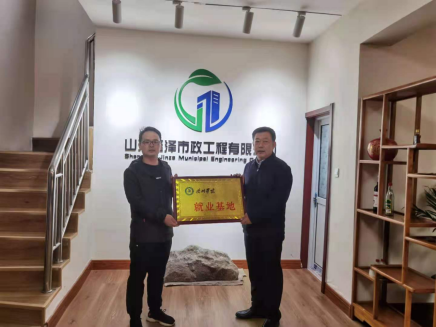 太阳成集团tyc33455有关负责人与山东瑾泽市政工程有限公司有关负责人签订了《太阳成集团tyc33455cc就业基地协议书》,并举行授牌仪式。
