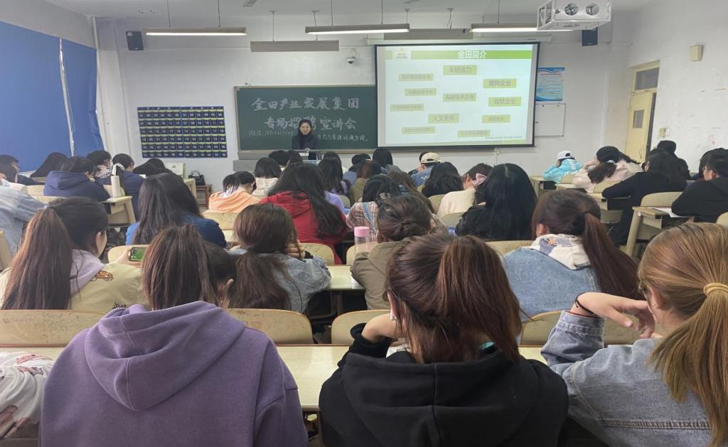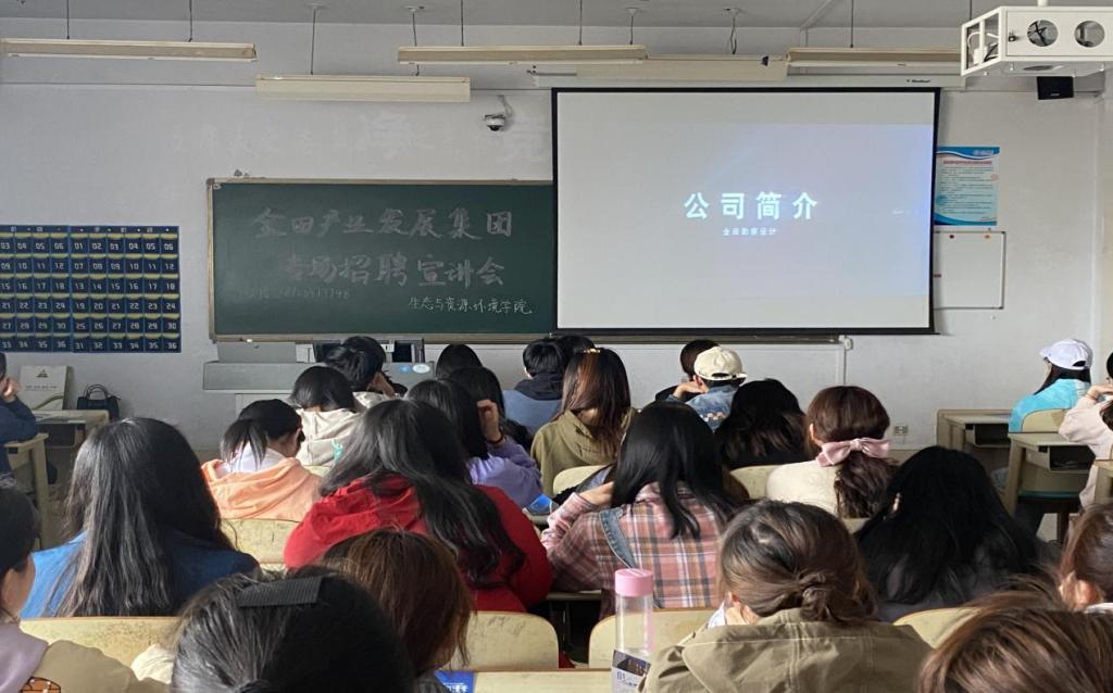 为了更好的解决太阳成集团tyc33455毕业生就业难的问题,搭建校企合作平台,缓解毕业生的就业压力。4月1日下午,太阳成集团tyc33455举办金田产业发展集团专场招聘宣讲会。