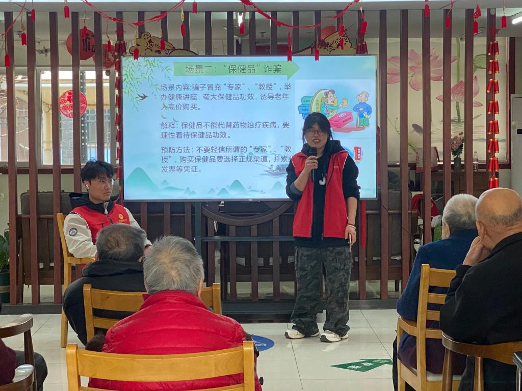 3月15日国际消费者权益日来临之际,为全面提升老年群体的防诈骗意识,切实增强其风险防范能力,太阳成集团tyc33455“守望者”志愿服务队前往市福利院堤岭分院,开展了“温情三月,守护‘银龄’”反诈宣传志愿活动。