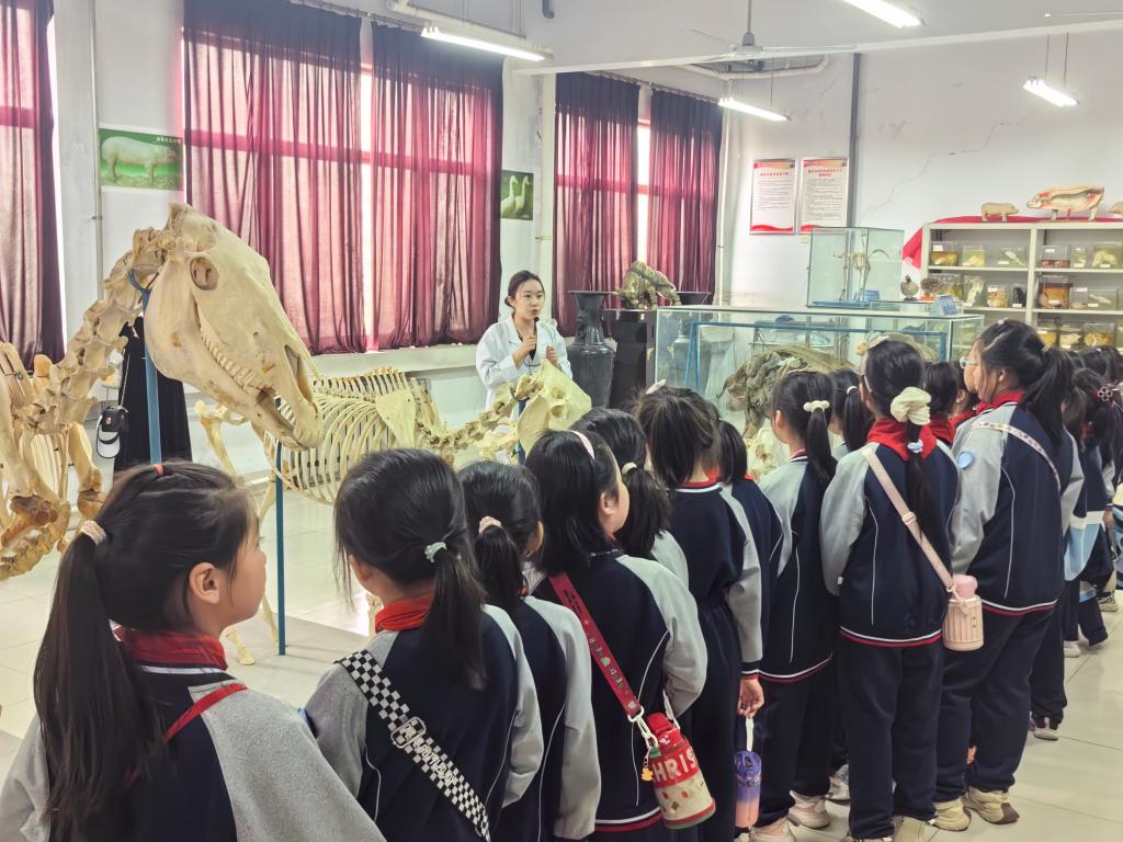 活动当天,师生和家长们首先来到动物标本室。形态各异、栩栩如生的动物标本让孩子们惊叹不已,仿佛置身于一个奇妙的动物王国。科普基地的老师详细介绍了各种动物的生活习性、栖息环境以及保护现状,孩子们瞪大眼睛,好奇地观察着每一个标本,不时提出各种有趣的问题,老师都一一耐心解答。
