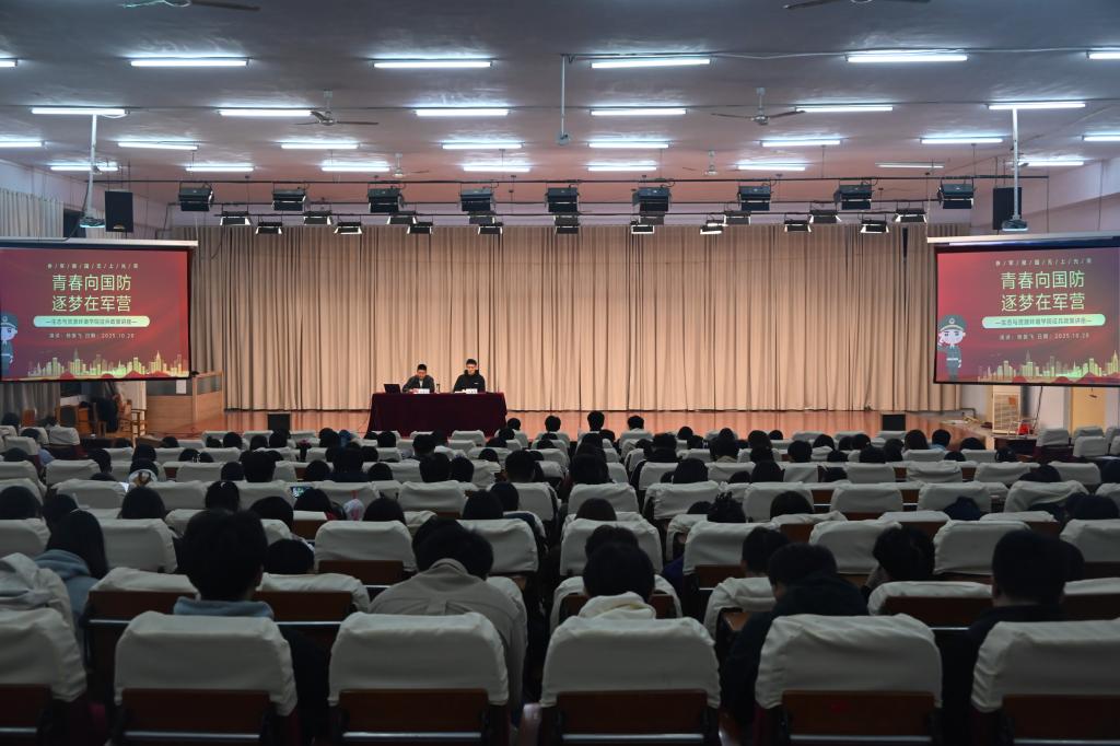 宣讲环节,杨振飞老师主要围绕2025年征兵政策展开解读,阐述征兵对象的年龄要求、体检标准、政治考核等基本流程,重点剖析大学生入伍在学业、就业等方面的优惠政策,帮助同学们科学规划军旅与学业的衔接。王冀鲁老师在主持中提到,大学生应勇担国防使命,让青春在强军实践中绽放光彩。