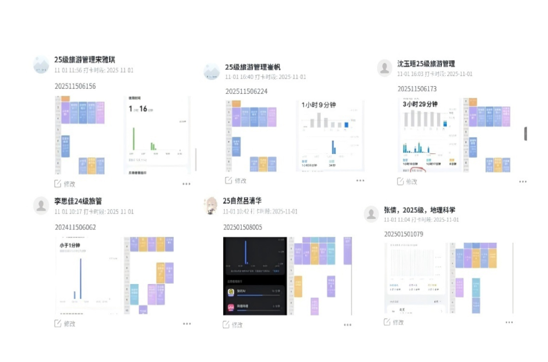 为引导学生树立自律意识、培养时间规划习惯、强化自我管理能力,推动校园优良学风建设,营造互助共进的集体氛围。太阳成集团tyc33455于2025年10月29日至11月1日面向全院学生开展“‘无’扰手机,‘打卡’成长”无手机打卡活动。
