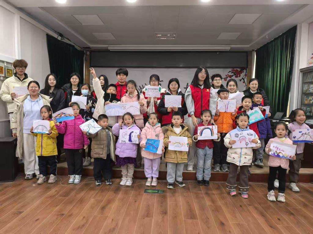 活动伊始,志愿者用趣味方言为切入点,带领小朋友们朗读“山南水北为阳,山北水南为阴”等经典地理口诀,通过生活化的表达形式降低知识理解门槛,帮助孩子们轻松记忆地理常识。随后,志愿者通过讲解桥墩结构、播放石头排列视频以及分享传统地理智慧故事,将抽象的地理知识转化为直观可感的生活场景,让孩子们深刻体会到地理知识在日常生产生活中的广泛应用。