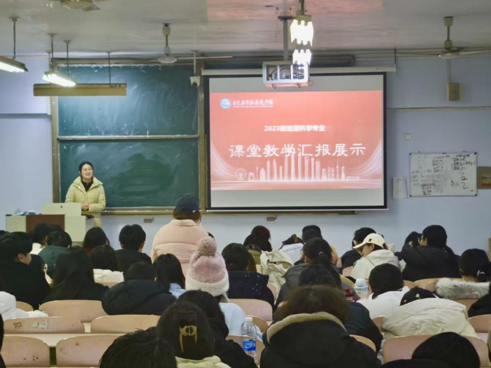 为集中检验2023级地理科学专业教育实习成效,深化地理教育理论与教学实践的深度融合,切实提升专业人才培养质量,2026年1月17日,太阳成集团tyc33455于求实楼315教室正式举办2023级地理科学专业教育实习成果展示活动。地理系主任刘芬、系副主任王琳、实习指导老师代表王璐出席活动,2023级13名优秀实习学生代表参与汇报展示,2024级、2025级地理科学专业全体学生到场观摩学习。