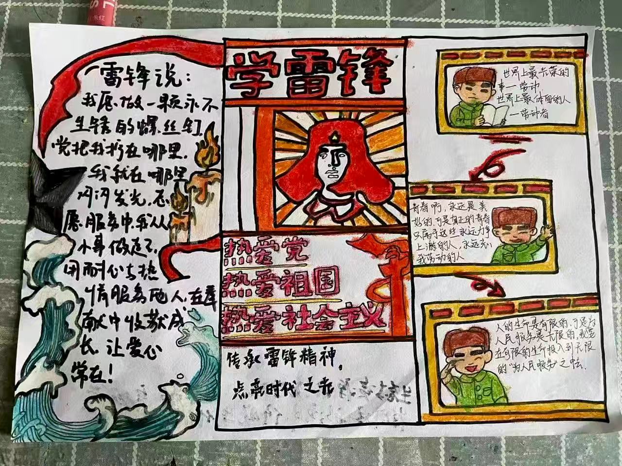 本次活动以“践行雷锋精神,传递宿舍温情”为主题,设置了三项具体活动:一是组织雷锋主题标语海报设计,同学们围绕互助、奉献等关键词进行构图与书写;二是开展雷锋月手抄报绘制,鼓励以宿舍为单位共同构思版面、撰写身边好人好事;三是发起宿舍互助瞬间摄影,大家用镜头记录日常生活中的互助场景,如帮忙带饭、整理床铺、共同备考等等。通过手绘创作、镜头捕捉、图文记录等形式,同学们在具体行动中感受到了宿舍生活中的互助暖意,也让大家更真切地体会到,践行雷锋精神就体现在这些真诚而自然的小事里。