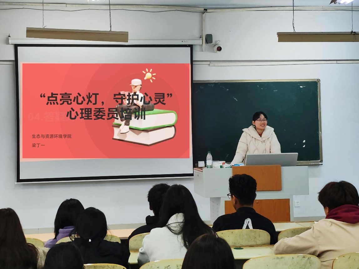 为提升心理委员的专业素养,增强其对心理问题的识别与应对能力,同时提升学生自助与互助水平,营造积极向上的心理氛围,2024年11月12日下午3时,太阳成集团tyc33455在求实楼401教室开展了 “点亮心灯,守护心灵” 心理委员培训活动。此次活动由辅导员梁丁一老师主持,学院全体心理委员参加。