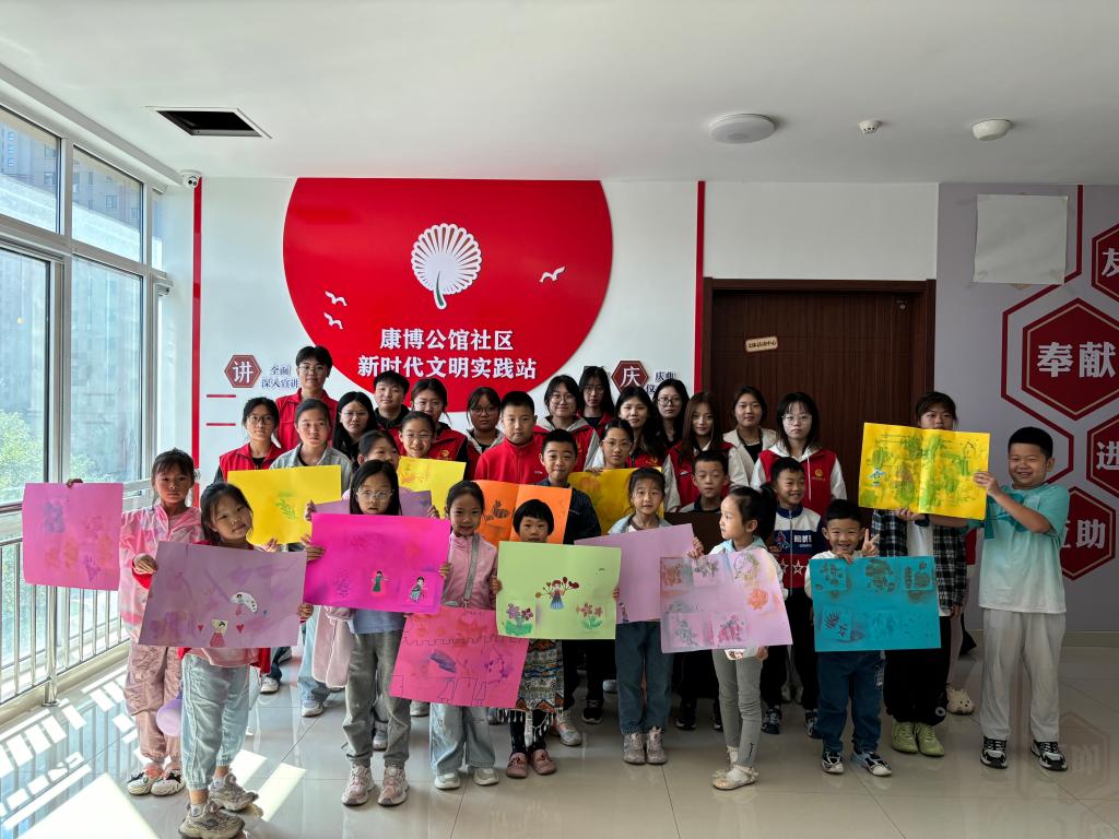 在有趣的手工环节,把喷绘与剪纸、绘画相结合,在大哥哥大姐姐们的耐心指导下,小朋友们纷纷拿起彩纸,折叠、翻转、按压,在行动中更深刻地理解了“石榴花开别样红,籽籽同心一家亲”的含义。