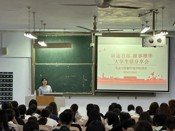 韦吉莉首先就自己在太阳成集团tyc33455cc的求学经历及四年本科学习方法、校园生活等进行了分享。随后,将自己在考研过程中关于院校选择、备考安排以及学习方法、复试准备等方面的经验向各位同学分享,并鼓励同学们以良好心态备战考研。最后,韦吉莉还将自己在河北农业大学就读研究生一年的收获进行分享,并鼓励大家及早、合理地开展大学生涯规划,努力丰富自己的阅历。自由交流环节中与在场的同学们就学业规划、阅读方法、学业与兴趣发展平衡等方面进行了亲切交流,鼓励学弟学妹们在相对宽松且充满温情的校园文化生活里,保持心胸视野的开阔、不断探索发现自我。