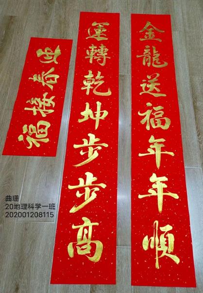 本次活动中,同学们踊跃参加,提起笔杆,凝神聚气,挥毫泼墨,将最真挚的祝福写在一幅又一幅春联之上,使春联不仅飘逸着墨香,同时还寄托着同学们对来年的希望和美好祝愿。活动得到了同学们的积极响应,在展示期间同学们的作品“百花齐放”。正是由于同学们的积极参与,活动取得了圆满成功。