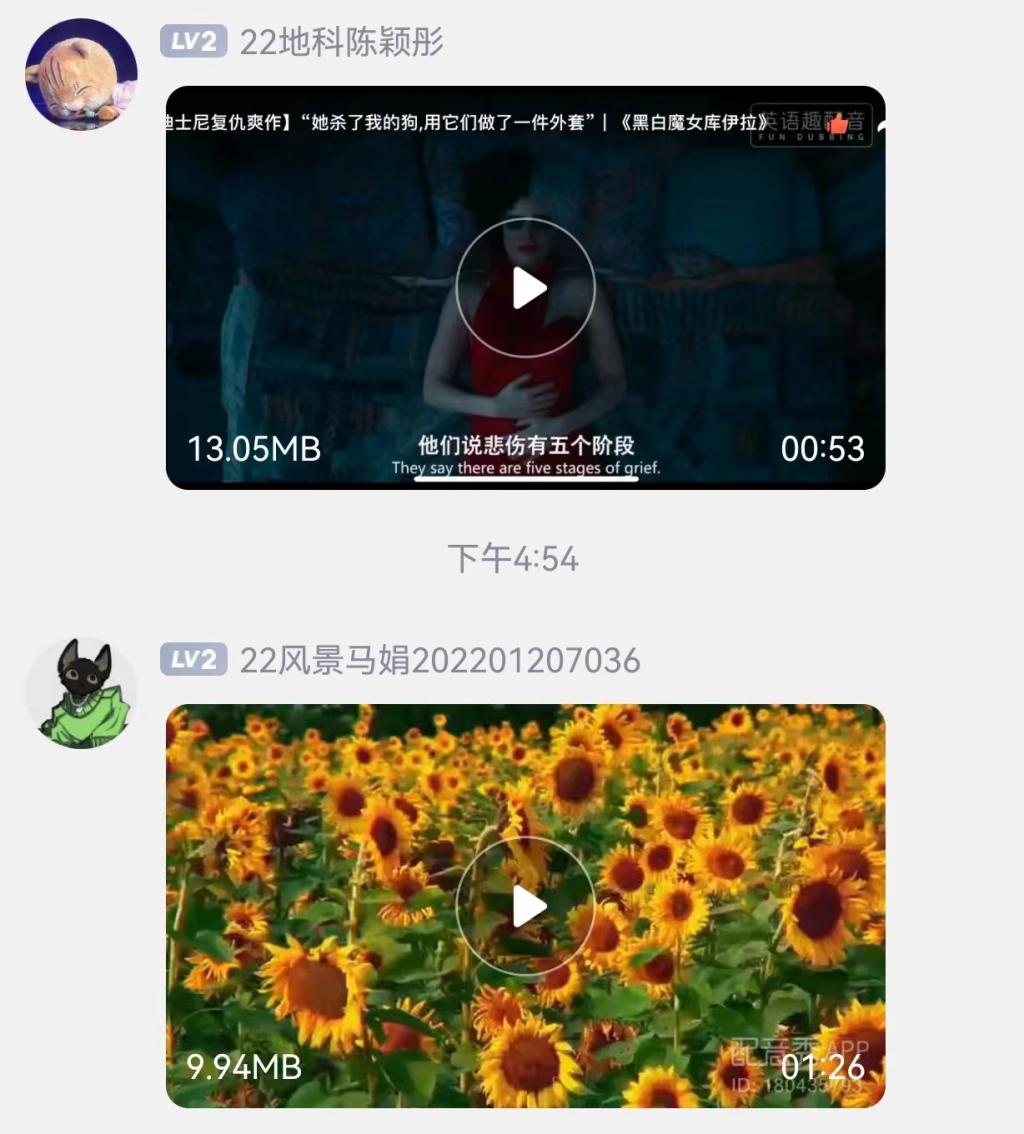本次活动同学们采用线上分享的方式,将自己喜欢的书籍名著片段、经典影视剧或者英语短文用自己悦耳动听的声音分享出来,让人声临其境,感受声音的魅力。此次活动中同学们也积极地相互交流,一起讨论人物的情感和怎样更好地用配音去表现人物形象,共同进步。通过悠然婉转的音频或者声容并茂的视频,我们看到了同学们对生活的热爱。正因为同学们积极参与,踊跃分享,本次活动顺利进行,并取得了圆满的成功。
