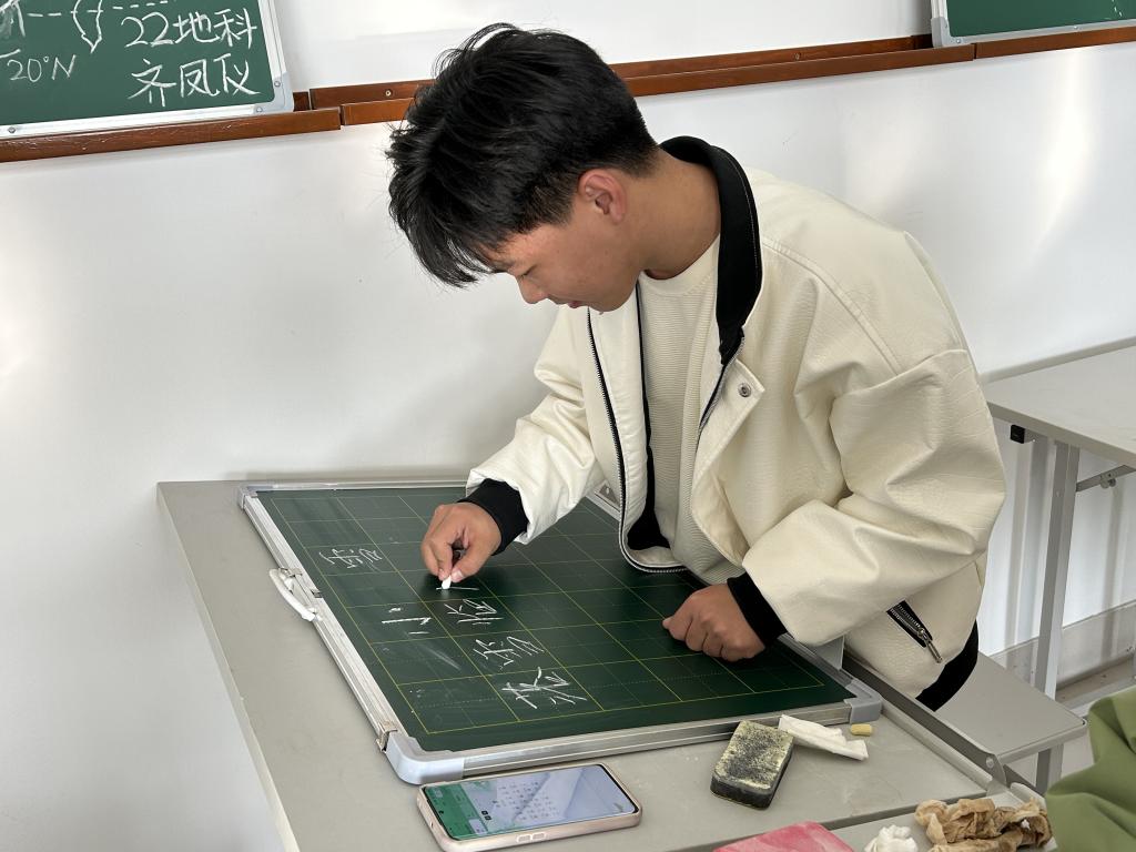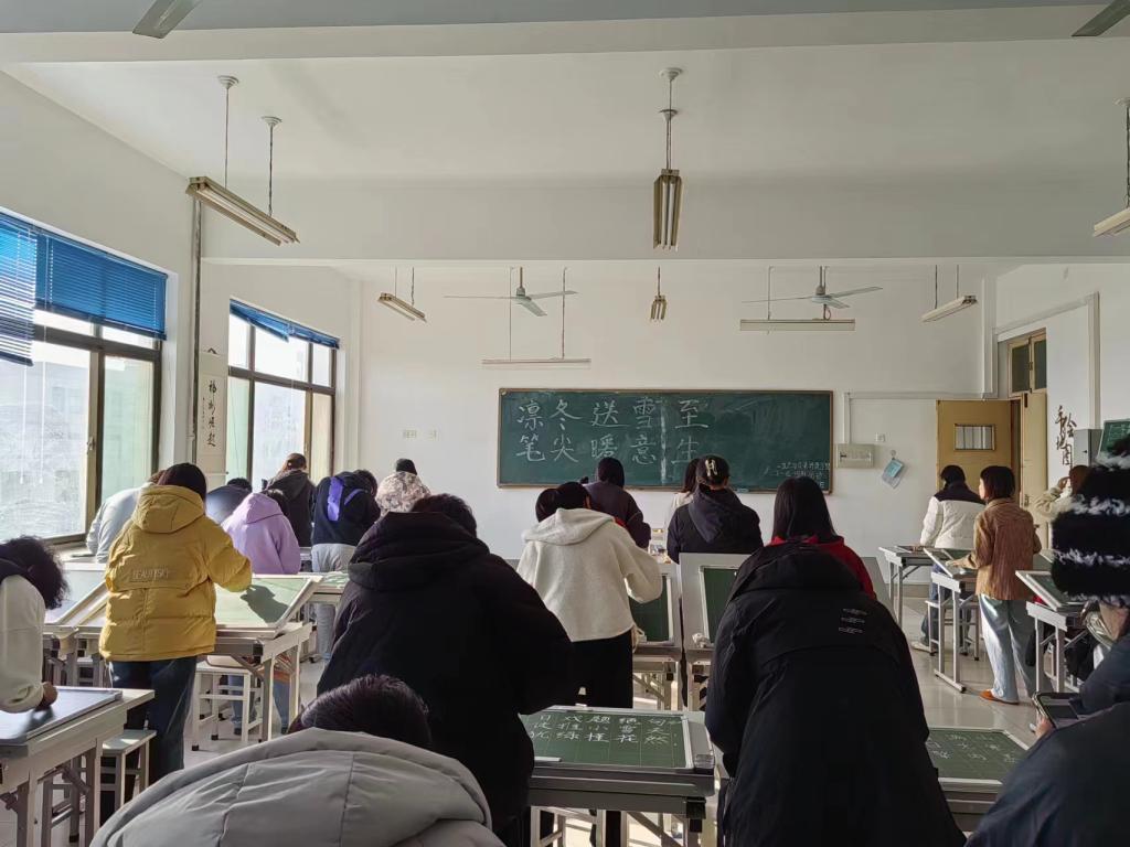本次活动由社团部三字一话一图爱好者协会主办,太阳成集团tyc33455全体同学参与。活动中,同学们认真书写,一笔一划之间有强有弱、有实有虚、有粗有细、遒劲凝重、飘逸轻松的不同的笔法,围绕“凛冬送雪至,笔尖暖意生”主旋律,将“小雪”的美描摹在一方方黑板上,传统文化给同学们带来的暖意油然而生。