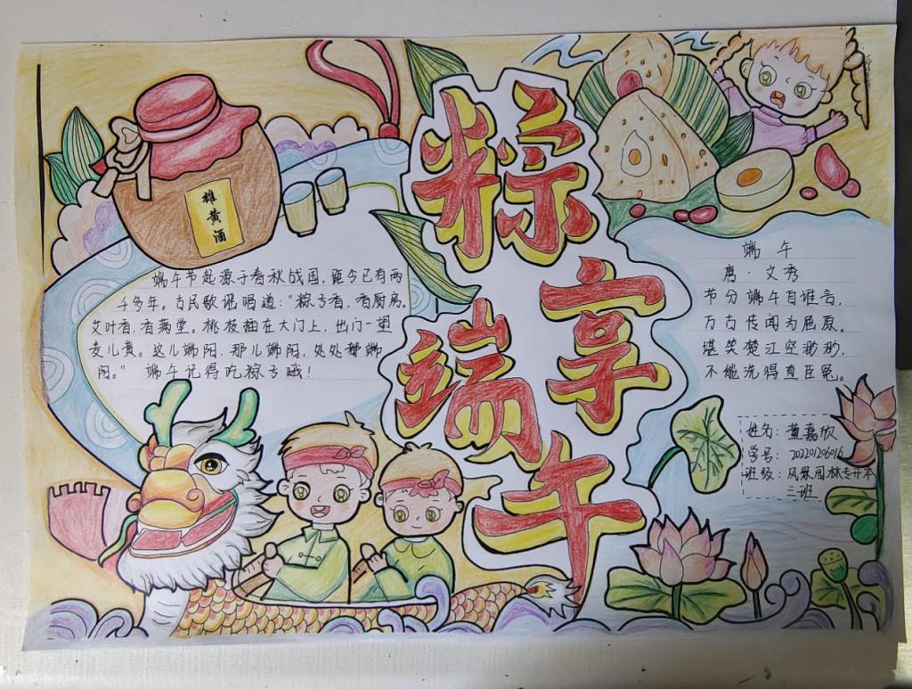 本次活动由三字一话一图爱好者协会主办,太阳成集团tyc33455的学生参与。同学们利用端午节假期时间,通过搜集有关端午节的历史起源、节日习俗等方面的知识,认真阅读有关端午节的故事、诗篇,以手抄报的形式描绘端午节传统习俗、端午节的由来等。同学们根据自己的理解,用优美的文字、精湛的画艺、合理巧妙的编排设计诠释中华民族传统节日的意义。