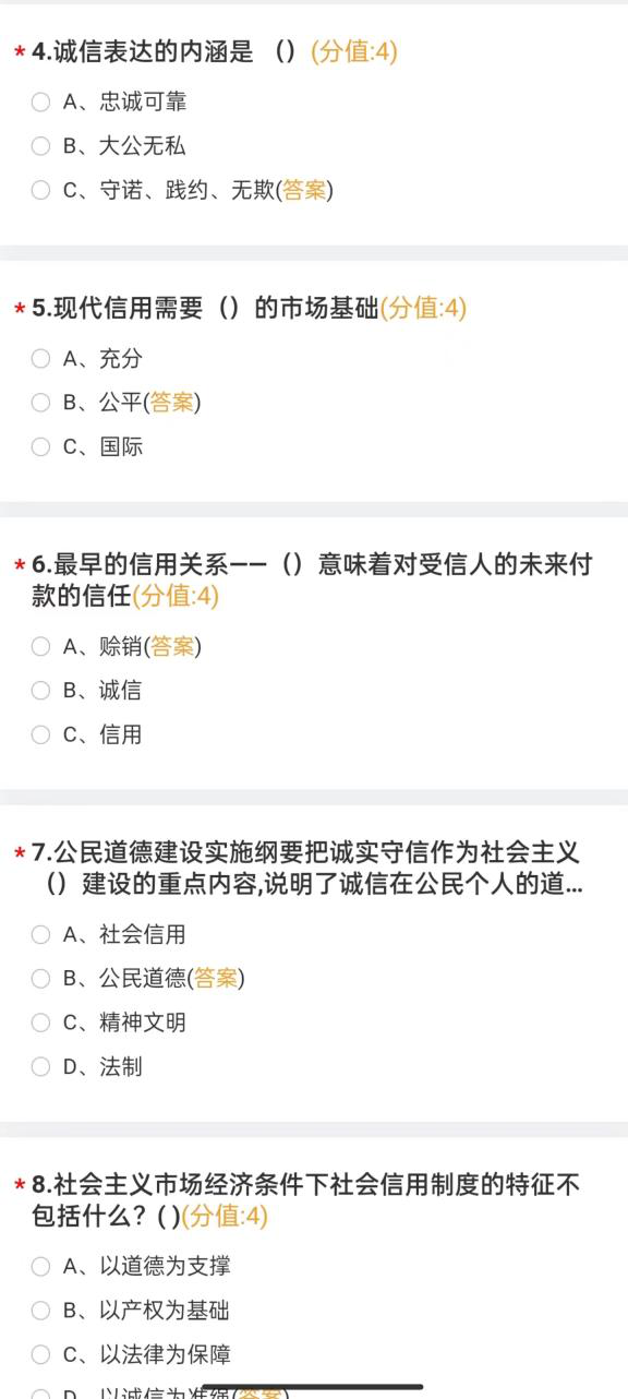 本次诚信教育主题知识竞赛活动采取线上小程序答题的模式,竞赛试题分为填空题、选择题及判断题三个部分,着重考察选手们对于资助政策,征信和金融基本常识的了解程度,帮助学生建立对诚信知识的理解,加深自身品格修养。同学们有序参与,积极答题,充分展示诚实守信、励志自强、感恩奉献新时代大学生的风采。