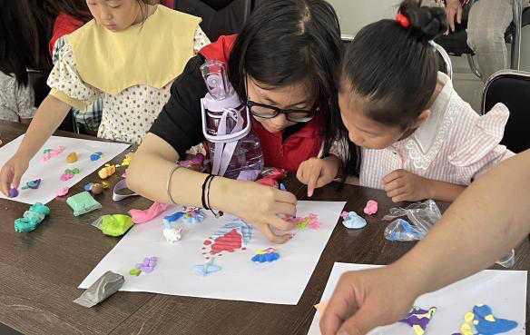 本次活动围绕寻觅地理,巧认省份开展,以寓教于乐为核心,首先由志愿者通过惟妙惟肖的图片形式,带领小朋友们认识中国的各个省份,并讲述每个省份的特色自然风光、美食、标志建筑等,使小朋友对各个省份有了初步的认识与了解。接着,志愿者们带领小朋友们利用黏土制作自己喜爱的、感兴趣的省份,在制作的过程中,使每一位小朋友都对各个省份有了更加深刻的认识。