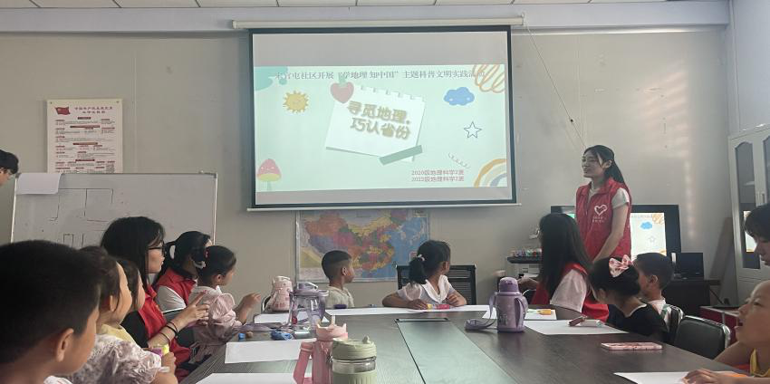 为积极展现当代大学生的良好风貌,促进理论知识与实践能力的结合,促使大学生以社会实践的形式走向基层、融入群众,增强社会责任感和使命感,同时为进一步加强青少年儿童对地理知识的教育,引领孩子们走近地理科学,激发爱国热情。6月3日,20级地理科学2班与22级地理2班的同学联合宋官屯社区开展“学地理,知中国”主题科普文明实践活动。