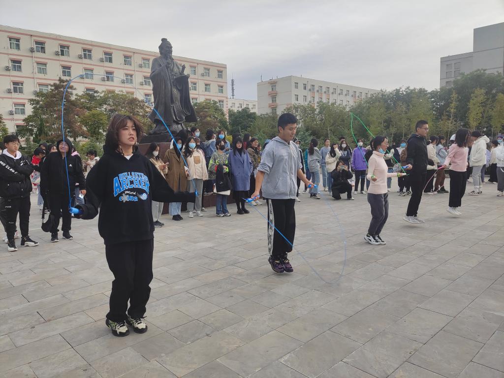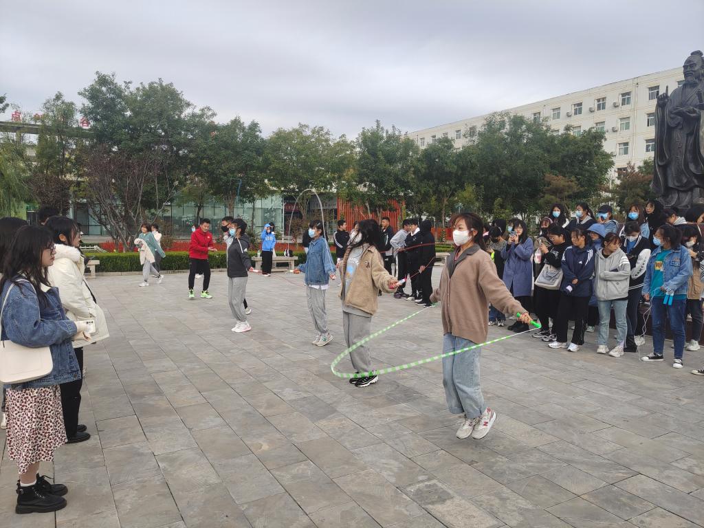 我院社团部设计了班级跳绳对抗赛、1分钟跳绳计时赛,同学们活动热情高涨,积极参与,充分展示出了青年人的活力与风采,同时表现出了团结一致,积极向上的良好精神风貌,现场气氛十分活跃。