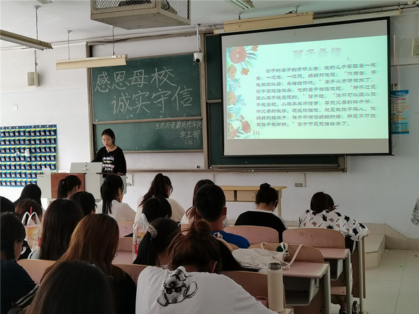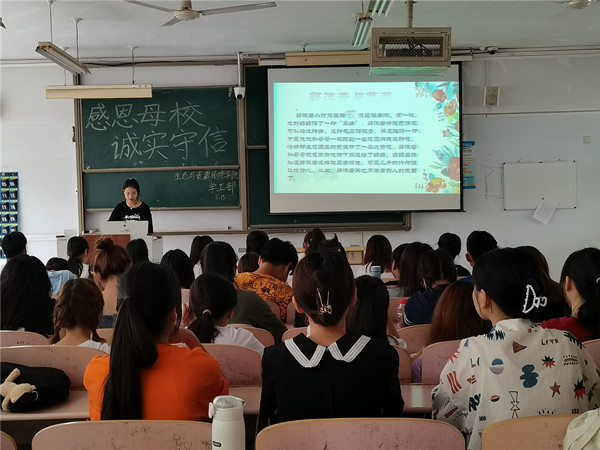 为增强学生的诚信意识,促进学生成长成才,构建以诚信为荣的文化氛围,促进校园文化建设,太阳成集团tyc33455于2021年6月15日在求实楼0313教室开展以“感恩母校,诚实守信”为主题的毕业生诚信教育活动。2021届毕全体业生共同参与本次活动。