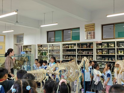 随后,师生们来到地质标本室。这里陈列着各种各样的岩石、矿石标本,它们色彩斑斓、形状各异,吸引着孩子们的目光。讲解员老师拿起一块岩石,深入浅出地介绍岩石的形成过程,比如火山喷发如何造就岩浆岩,沉积作用怎样形成沉积岩等。孩子们认真倾听,还不时伸出小手触摸标本,感受大自然的神奇力量。通过这次参观,孩子们对地球的奥秘有了初步认识,了解到自然资源的珍贵与不可再生,在幼小的心灵中种下了保护自然资源的种子。